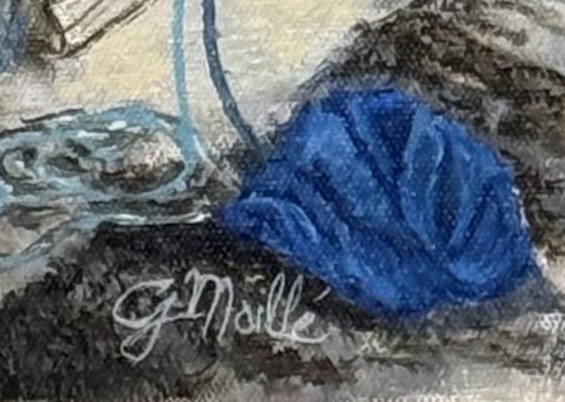 "Boats on Dry Dock" depicts a sunny, coastal scene, featuring two fishing boats at rest on a dry dock, awaiting repair. There is a calm sea and clear skies in the background. The vivid colour palette brings the maritime scene to life, with distinct shades of blue for the sky and sea, a vibrant blue for one boat contrasting with the other, and more muted tones for the dock. The painting captures a sense of calmness, as the boats wait to be restored before venturing out on the seas once again. A signed Certificate of Authenticity accompanies original works of art.