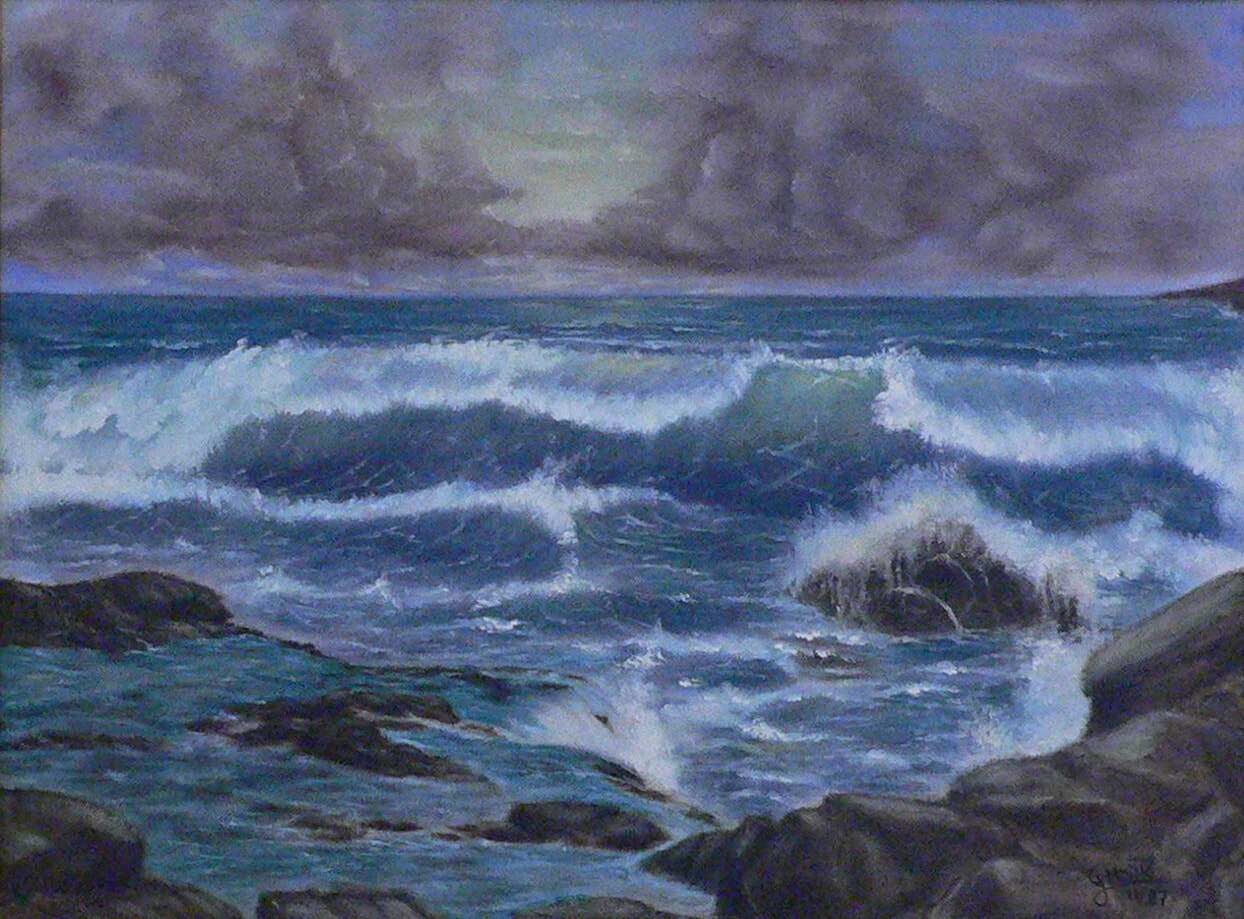 This seascape painting of a rocky section of the Mediterranean coast of France, where I grew up, depicts a storm at sea.